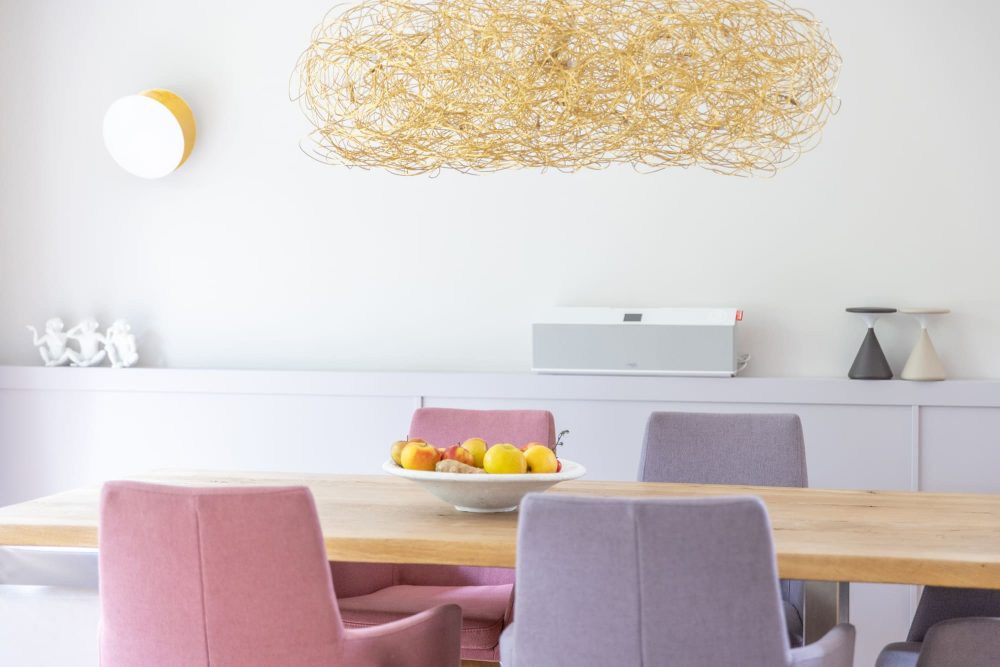 Auch der Eßbereich erhielt ein neues Gesicht durch eine Wandvertäfelung und einem neuen Beleuchtungskonzept.